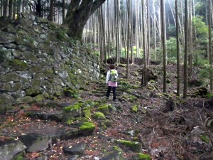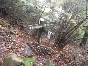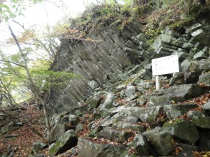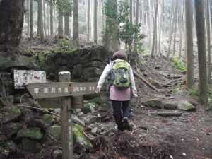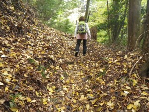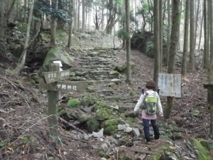| 大南神社への分岐 | 落ち葉に埋もれた石畳を歩く | 材木岩 |