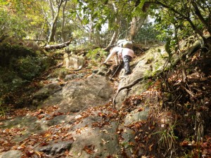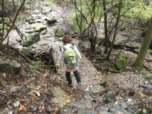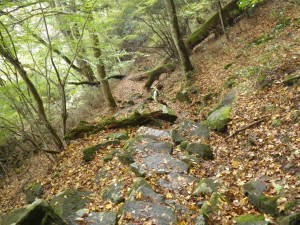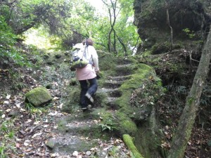 | 登山道は崩れている | 石を削って作った階段 | きつい上り |