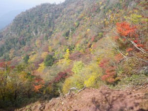 | ▲中腹では未だ紅葉が始まったばかり | ||