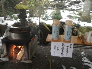 | お参りを済ませ | 甘酒をいただく | ササ湯もいただく(10:15) |