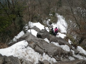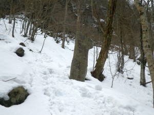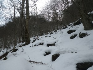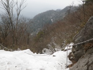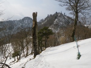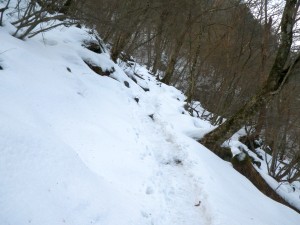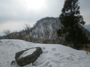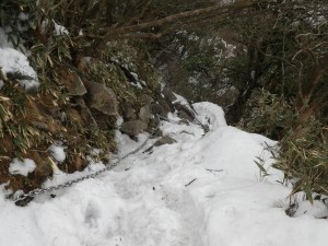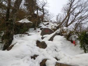 | 筆立岩横を通過 | 望雲台分岐を通過(10:30) | 雪は深くなる |