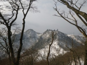 | 上宮から南岳を見る(12:00) | これから登る南岳 | 途中振り返って見る上宮 |