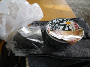 | ん?人がいない・・・・ | 避難小屋の中も少ない | 今日もミニカップとおにぎり(飯がちょっとカタい) |