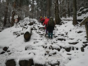 | アイゼンは未だ不要 | 東屋で一息(10:16) | たくさんの登山者が歩く |