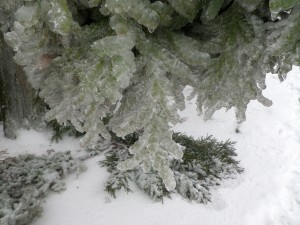 | 樹皮に張り付く氷 | 5cmほど伸びた海老の尻尾 | |