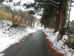 | 舗装道は雪が溶けている | 別所駐車場 amiさんが手を振るが・・・(14:48) | |