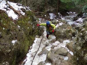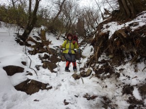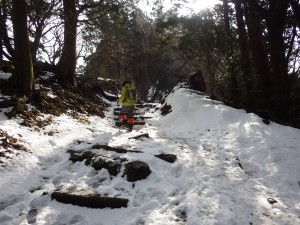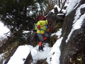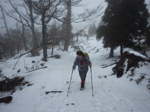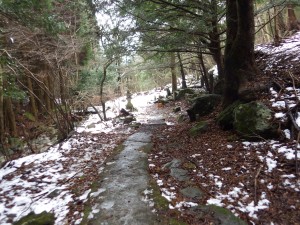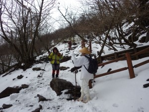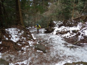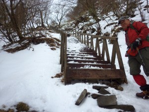 | 木の階段をクリア | 凍結して滑りやすい | 修験者の方と少し話を |