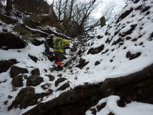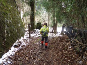 | 石段は凍っている | 石段の参道を歩く | 鎖場を通過(10:14) |