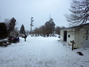 2015年1月4日(日) 天気 曇り ■出発時間:午前7時30分(自宅) ■メンバー:家内と私の2名 大晦日の日は午後から突然天候が荒れ雷が鳴り続けた。元旦の朝は屋根に雪が薄く積もり、 初日の出を拝むことは出来ないにしろ正月らしい朝を迎えた。 初詣は、昨年同様高住神社に参ろうと今年は家内を誘い英彦山へと向かう。 しゃくなげ荘を過ぎると道路には雪があるので別所駐車場へ停めるのは諦めて銅鳥居下の駐車スペースに停める。 ここから歩けば良いが、何しろこのところの食べすぎ飲み過ぎの体、最後まで歩けるかどうか・・・・と言うことで軟弱な二人は初めてのスロープカーを体験する。花駅から奉幣殿まであっという間である。奉幣殿でお参りをして参道を歩き始める。最初の東屋でアイゼンを装着し、歩きなれた雪の参道を進む。 中津宮を過ぎ、行者堂付近で後方を見ると何と「中間の宮ちゃん」さんが登ってくるではないか 頻繁にこの英彦山を歩かれているのでお会いする確率は高いのだが・・・・。昨年の鷹ノ巣山にしろまたしても偶然の出合いである。 中岳の避難小屋は既に満席のようだが、何とか三人のスペースを確保して昼食とする。 きれいになった小屋は、人気の英彦山にしては狭すぎるようである。 ここから宮ちゃんと同行することに。目的の高住神社でお参りをして別所駐車場方面へと歩く。途中で宮ちゃんとはお別れして奉幣殿への道を登り返す。 奉幣殿でしばらく休憩をして再びスロープカで花駅まで 雪は少なく、樹氷も見ることができなかったが、ちょっと趣向の違う山歩きとなった。 今日も山に自然に山仲間に感謝!! ■コースタイム 奉幣殿-(60分)-中津宮-(40分)-中岳-(30分)-北岳-(45分)-豊前坊-(50分)-車道から奉幣殿への分岐-(20分)-奉幣殿※休憩時間含まず。全行程で6時間でした。 |