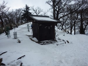| 北岳にて(12:45) | 北岳の祠 | 雪が溶け始めていて滑る |