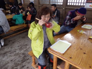 | うまそうにおしるこを食べる家内 | ||