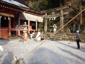 | 奉幣殿(9:54) | お神酒 | 雪は少ない10:07 |
