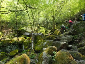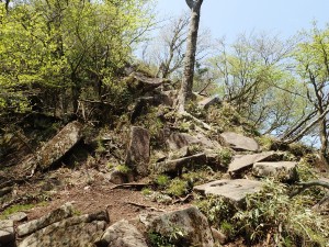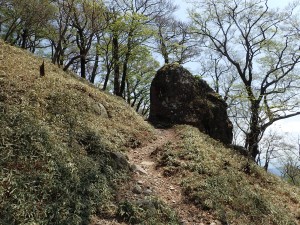 | ここは磐境と呼ばれる聖地で立入禁止 | 岩が積み上げているようにも見える | 下山開始 |