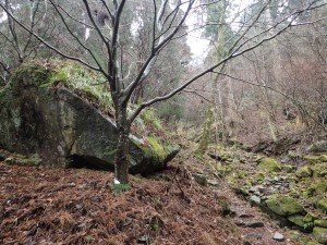 | バードラインとの合流点(12:32) | 岩にしがみつく木 | 苔がきれいだ |