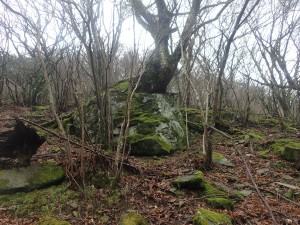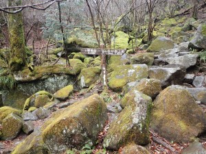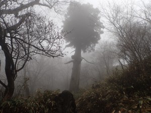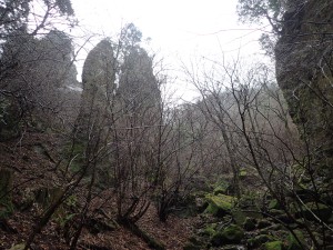 | 天狗杉・・・神社で参拝 | 神社の脇から登山道に入る(10:10) | 奇岩群 |