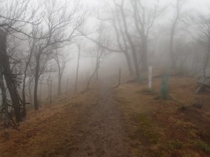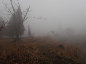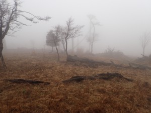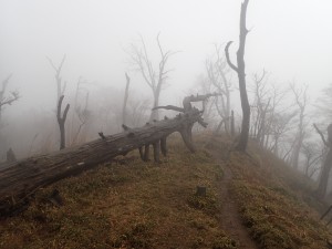 | 北西尾根を降る(11:56) | 草が赤くなっている | ガスって視界が悪い |