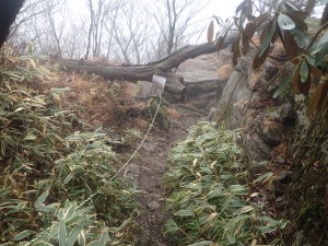| しばらく続く縦走路 | キノコ発見 | 岩場を登り返す |