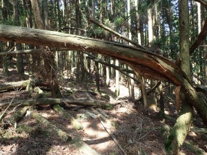 | 雪の重みか・・・・ | 尾根にとりつく | 振り返ると鷹ノ巣山が見える |