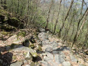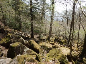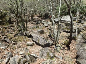 | 白蛇は無事に越冬したようだ | 南岳と中岳 | 岩上に ギボウシの芽がたくさん出ていた |