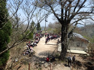 | 振り返って南岳 | 中岳にある上宮(11:35) | 中岳頂上は大勢の学生 |