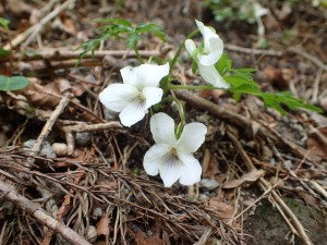 | 北岳から豊前坊へと降る | スミレが多い | 犬ケ岳が見える |