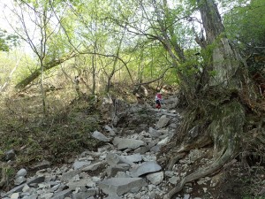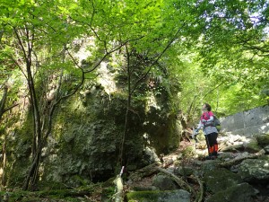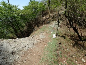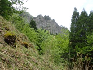 | 振り返ると望雲台の絶壁が見える | 薬師峠付近 | ここは落石が多い |
