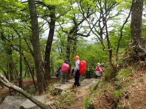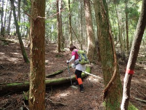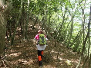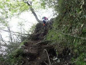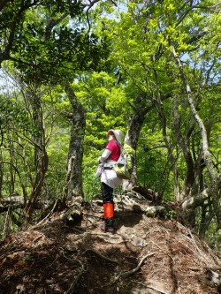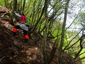 | 急登する | ミツバツツジが咲いている | ヤセ尾根 |