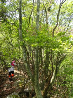 | ミツバツツジ越に刈又山 | ヤセ尾根の巨樹 | でかい |