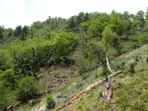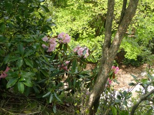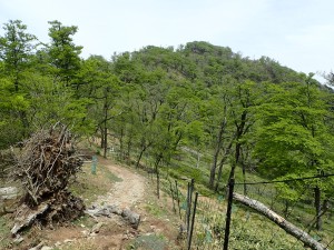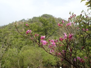 | 新緑がきれいだ | シャクナゲが咲いている | 左は切れ落ちている |