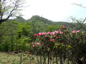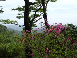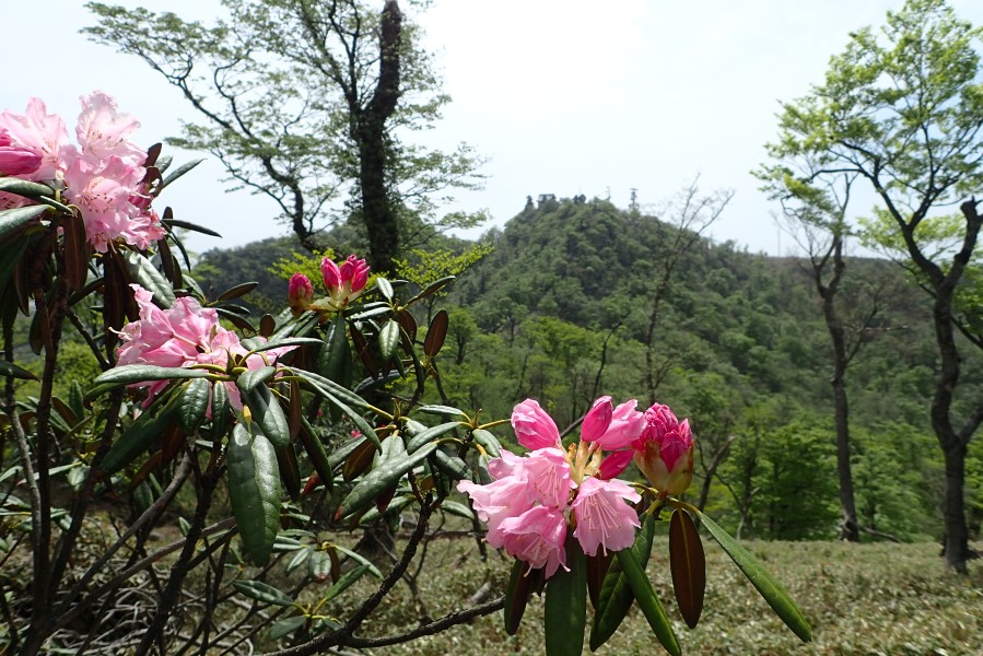 | ▲シャクナゲ越に英彦山主峰 | ||
