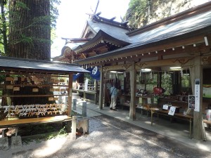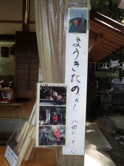 | 青空が覗く | 高住神社 | 陽希さんお迎えの張り紙 |