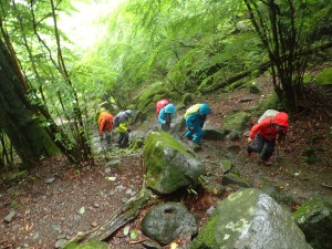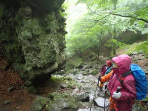 | ギボウシが髪のような巨石 | ドウダン | 岩場を登ってきた |
