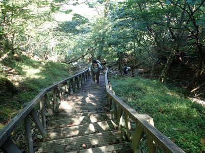 このところ山は混んでいたが、今日は空いている。高住神社でお参りしてスタート。森林浴をのんびりと楽しむ。歩行速度は亀のように遅い。それでも溶岩の壁を通過し、木の階段を上り、北岳の肩へ。