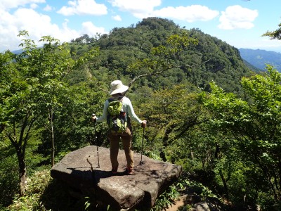 岩場も楽しみながら登れる。かなり時間はかかったが無事中岳に到着。既にランチを楽しむ登山者がチラホラ。私たちも風の通り道でのんびりとランチタイム。