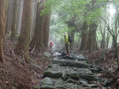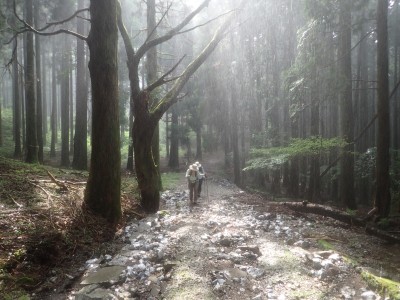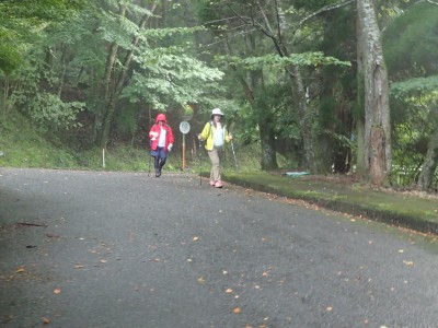 雨は霧雨で熱くなった身体には気持ち良い。ところが徐々に雨粒は大きくなってきて雨具を着ることにした。駐車場に着く頃には青空なのに「雨」と言ういわゆる「天気雨」。