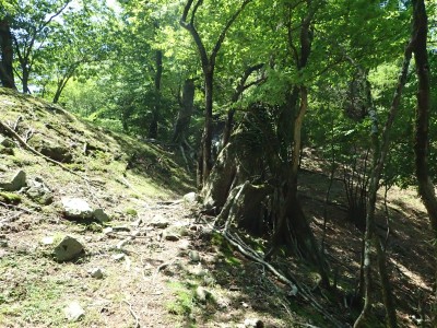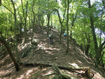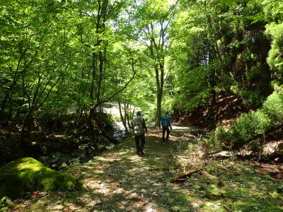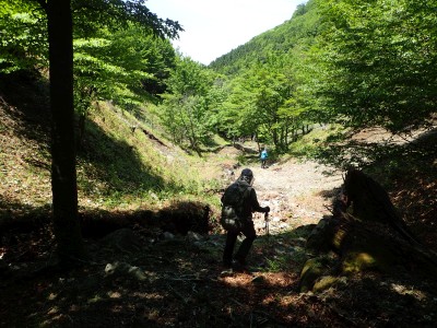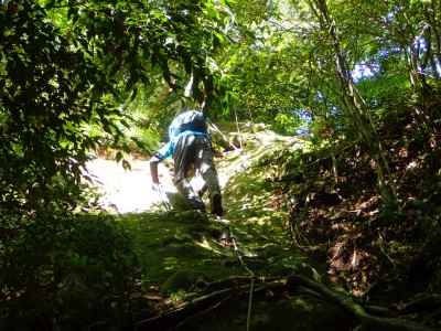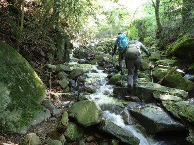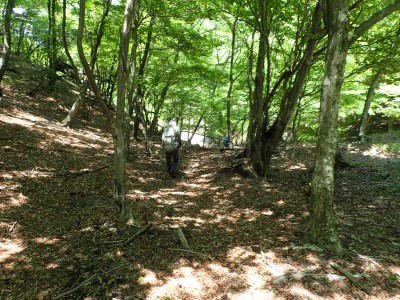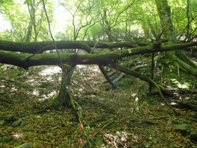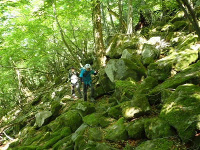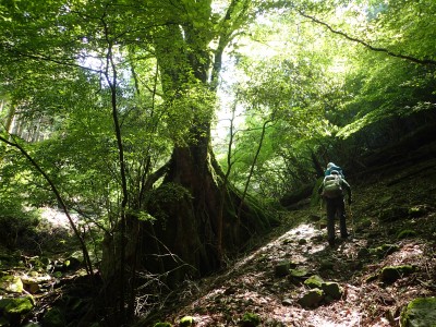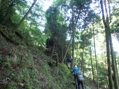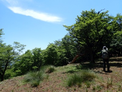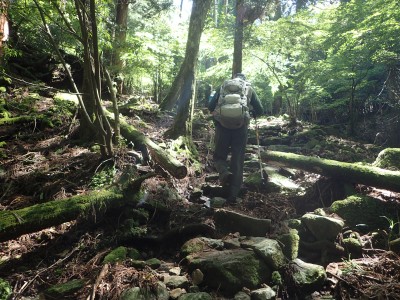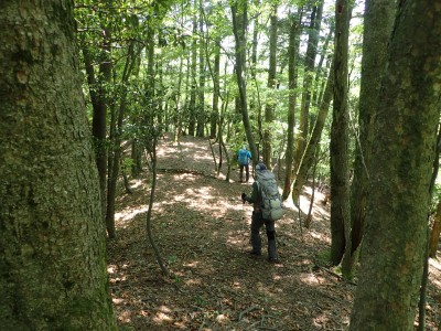 いつもの下見メンバーで前回に引き続き英彦山付近を歩くことにした。前回(5月9日)は、別所駐車場から玉屋神社、鬼杉を経由し南岳、中岳と山頂を踏み、北西尾根を降った。今回は、英彦山権現から再び玉屋神社、鬼杉と進み、南岳への登山道の途中で裏彦ルートに入り籠水等峠より南に尾根を歩き1044mのピークである猫の丸尾を目指す。なぜ「猫の丸尾」なのか、ネットで調べてみたがわからない。私の勝手な想像だと猫の丸い「尾っぽ」の形を表しているのではないだろうか、岳滅鬼からの稜線はちょうど境界になるが、この1044mのピークでひょいと丸く西側に折れているように見える。でもやっぱりそんなことじゃなく、ある日ある人の飼うマルオと言う猫が、ここまで来ていなくなったとか・・・ま、結局正解はわからないし、世間ではどうでも良いことだろうし、このことは忘れよう。