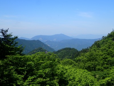 | ▲ 猫の丸尾の頂上からの展望(尖ったピークが岳滅鬼) |