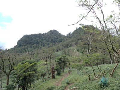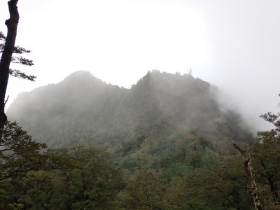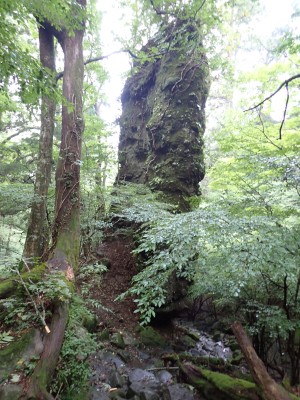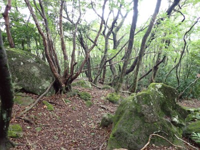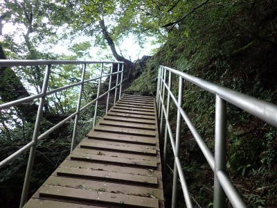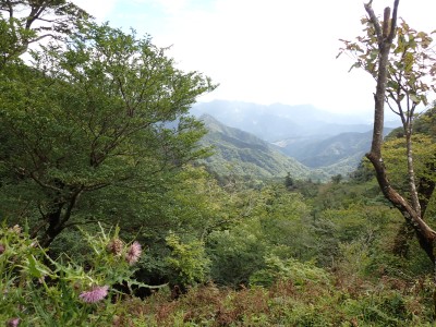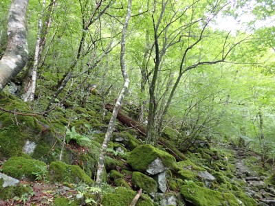 豊前坊までは国道322号線で香春町を抜け、添田町を通るが豪雨の影響で通行止めの道が何カ所かあった。豊前坊に着くとやはり涼しい。長袖Tシャツの上に半袖Tシャツを重ねて出発。駐車場は思ったより空いている。高住神社で安全祈願を済ませ、入山する。前に1組、後ろには2組の登山者。北岳の肩まできつい登りだ。そこから梯子をクリアして一気に北岳頂上へ。そこで休憩していると一人の登山者に追い越される。南は展望が良いが北側はガスって何も見えない。北岳から中岳への縦走路は私のとても好きな道だ。岩場を登り切ると広い中岳の頂上に出る。既にたくさんの登山者が時間的にはブランチをとっていた。少し休憩をして南岳を往復する。現在、上宮神殿は立ち入り禁止となっていて迂回路を歩く。参道に出て一旦降り、登り返すと標高1199.6mの南岳だ。英彦山の標高はこの南岳となっている。南岳は以前展望台が設置されていたが朽ちたため撤去されている。現在は樹木で囲まれ展望は良くない。写真だけとり一旦中岳へと戻って昼食だ。ガスがかかっていない南側を眺めながら今朝仕入れたおにぎりを頬張る。下山は北西尾根を降る。昔のようにカヤで覆われてしまったのはなぜだろうか。観察路に合流し、スキー場を経て豊前坊へと無事下山。今日も山に自然に感謝!!