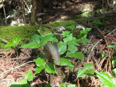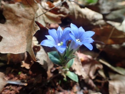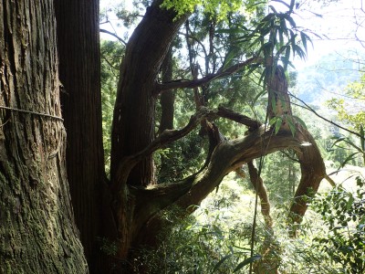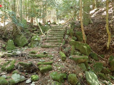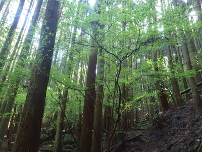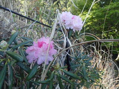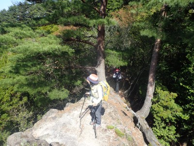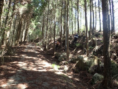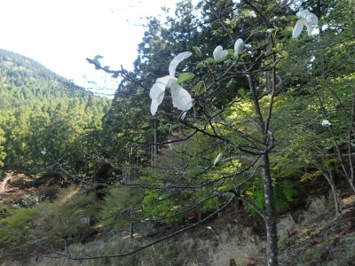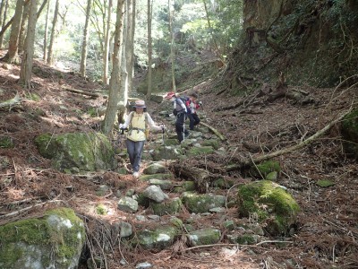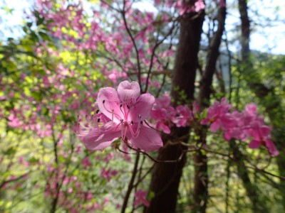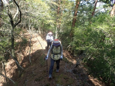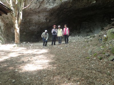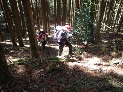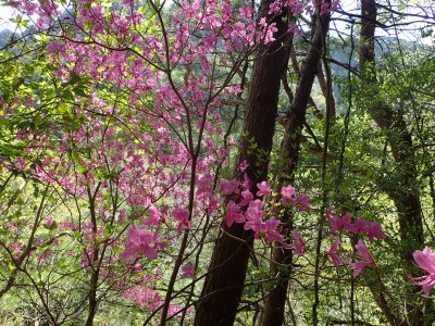 駐車場から順調に双戸窟に到着し、一旦登山道に出ると虚空蔵窟に立ち寄る。そして登山道を外れ白岳へ、断崖絶壁を見て急斜面を降り泉蔵坊跡広場で昼食。そして広場の南側に古い石段があるので足を踏み入れるがすぐに道を見失う。地図を見ながら適当に歩き登山道へ出る。そこから玉屋神社経由で大南林道へと降る。その手前でミツバツツジがたくさん咲いていた。なんだか「よく歩いたねぇ」と花が迎えてくれた気分だった。そして今日のメンバーの満足そうな笑顔が何と言っても私へのご褒美であった。今日も山に自然に仲間に感謝!! |