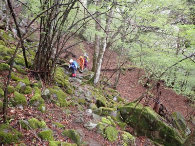 豊前坊駐車場-(18分)-薬師峠-(80分)-ケルンの谷-(60分)-縦走路出合-(10分)-中岳-(40分)-北岳-(90分)-高住神社−(5分)−豊前坊駐車場 ※全行程で約6時間でした。 |