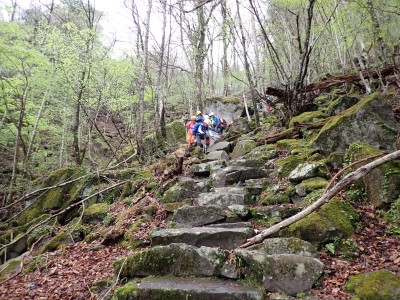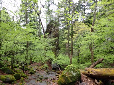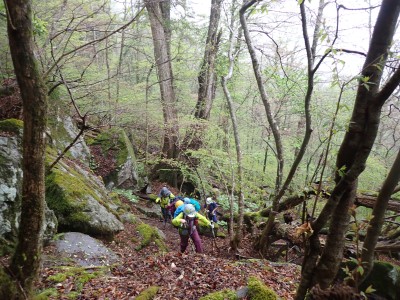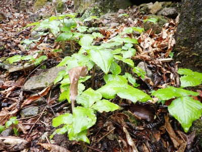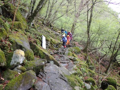アタック山の会4月例会山行は、経読岳の予定であったが先日の下見で目的のシャクナゲの花が見れないことがわかり急遽英彦山裏彦ルートに変更した。シャクナゲの花が見れない理由は2つある。1つは花芽がほとんどない。2つ目は、花芽があっても堅く閉じているので開花が遅い。これではいくら群生地に出向いてもがっかりするだけである。ではなぜ裏彦ルートなのか、この時期は、ヤマシャクヤクが咲く。花は1週間ほどで終わってしまうが、ちょうど今しかない。1週間前、ネットで情報を探ると未だ蕾だと言うではないか、と言うことは・・・・・・。そんな訳で裏彦ルートとなったのだが、天気が思わしくない。実行日まで落ち着かない日々が続いた。中止しようかとも考えたが、降雨量はかなり少ない予報だったので決行することにした。