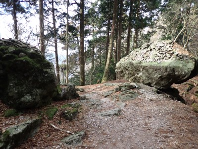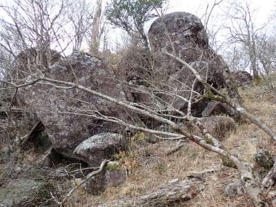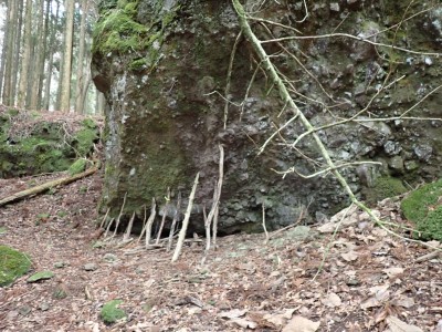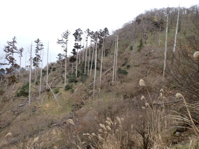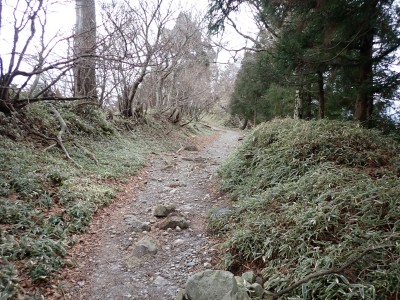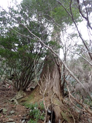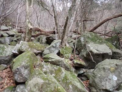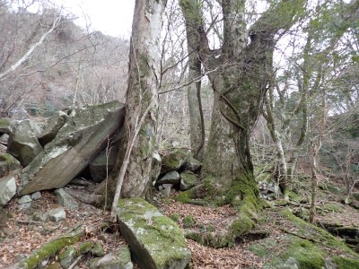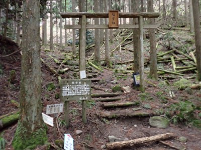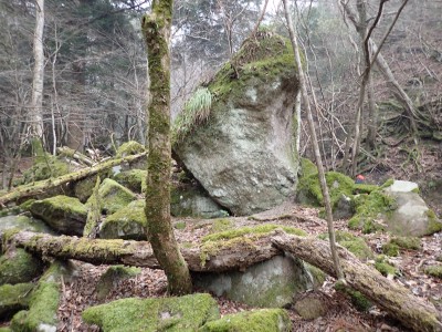 別所駐車場は意外と車が少ない。気温は低いが凍結はせず、もちろん雪もない。奉弊殿でお参りをして鬼杉方面へともう慣れた道程だ。上宮の神殿建替工事で途中通行止めなので登山者は少ないようで、奉弊殿では私以外に3組しか見当たらない。鬼杉へ向かうルートは静かなもので私しか歩いていないようだ。衣ケ池から滝へ向かう。それまでの道と打って変わって歩きにくい。登山道は有難い物で整備されていないルートは本当に歩くのが大変である。雪がちらほら降ってきたので雨具の上着だけ着る。滝に近づくにつれて石の大きさが大きくなっているような気がする。そうなると両手両足での歩行となる。前回(一昨年)ここは歩いたので迷うことなく滝にぶつかった。もちろん全く氷結していなくて誰もいない。前回はここから南岳へと滝の右側をよじ登って行ったが、団体で歩けるようなルートではない。Wの滝は産霊神社を目指すことになるので反対の左側(右岸側)を行くことになる。しかし、明確な道はなく、印もない。とりあえず、絶壁の際をなぞるように進むというか方向的には戻るように西側の谷へと進み小さな尾根沿いに登り始めるが、とんでもない斜度になってきて滑ったら危険なルートに入り込んでしまった。とろどころ赤テープがあるが、おそらく積雪時に歩いた方が付けたのではないだろうか。30分ほど奮闘してようやく足だけで歩行できる場所に行き着いた。いやー疲れた・・・・・。ピークに立つと北岳が目の前に現れて眺めを楽しみ、鹿ネット沿いに歩いて産霊神社に無事到着。テーブルには男女1組の登山者がランチを楽しんでいて挨拶程度の会話をした。ここで私もランチだが風も強くても寒い。暖かいカップスープもすぐに冷めてきてのんびりと過ごすなんてできない。Wの滝も立ち寄ろうと考えたが、その気にならず下山開始。慣れた参道を降った。途中で2組の参拝客(登山者ではない)が登ってきた。1組は小さな子供を2人とご夫婦、昔私が若かった頃に同じように子供を連れて参拝ついでにスニーカで登ったことを思いだした。