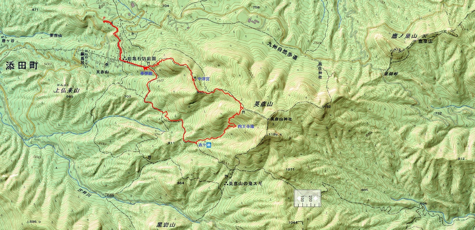 英彦山(GPSによる歩行軌跡) 縮尺 約1/25000