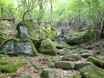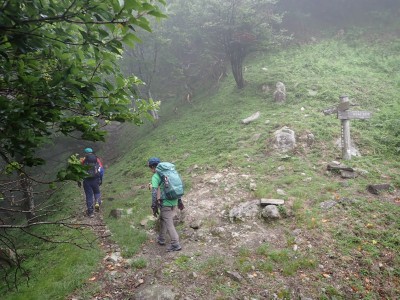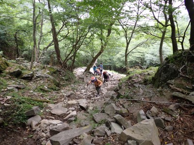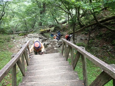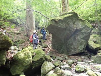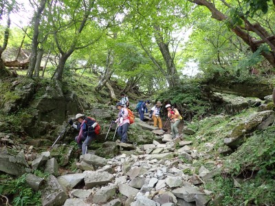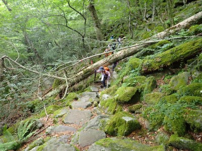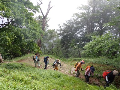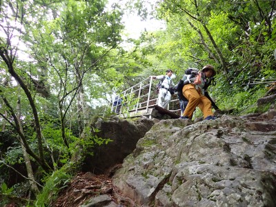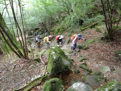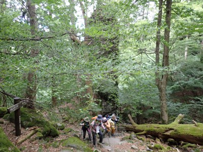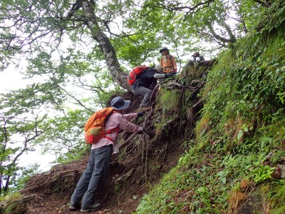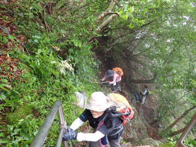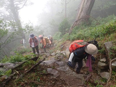 7月に入って連日34度を超える猛暑が続いているが、今日の英彦山はとても涼しい。強風のせいでもある。目的のイワタバコは昨年に比べて花が少ないが、とても愛嬌のある花を写真に納めようとスマホのカメラを皆向ける。北岳の肩まで登り切るとガスが強風で煽られ、一気に身体が冷える。ここからは多少危険な場所もあるが、全員問題なくクリアして頂上に着く。不思議なことに頂上だけ、風もなく明るい。未だ10時過ぎたばかりだが、今日はここでブランチタイムだ。今回の山行は暑さに備え、午前中でで下山する計画をしたのだが、やはり「山で皆で食べる」楽しみは必要だと思うので初めて取り入れた。集合写真を収めえ下山開始。頂上のすぐ下の広場から南の遠望を見ようと立ち寄る。もちろんガスで何も見えない。ところが全員で眺めているとこれまた不思議なことにガスが抜けて行き視界が開けた。これには皆驚きの声が上がる。「見えて当たり前のもの」が見えても特に感動しないが、見えないと思ったものが見えると人は感動を覚えるようだ。下山は往路を戻るが、石段は結構きつかった。皆の協力でアクシデントもなく無事下山。参加者はとても少なく寂しかったが、とても楽しい1日をくれたメンバーには本当に感謝だ。今日も山に自然に仲間に感謝!!! |