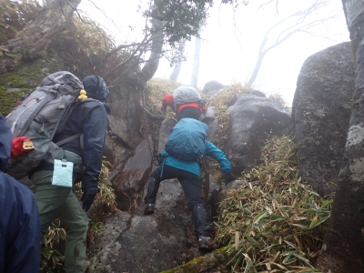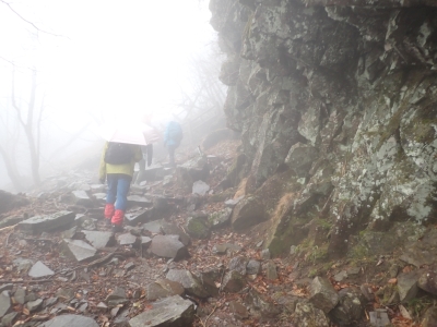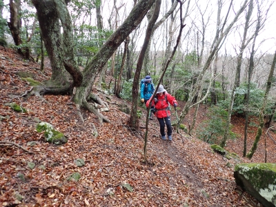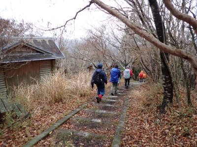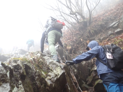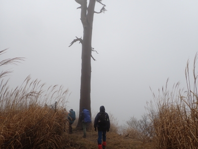 アタック山の会の例会山行は長らく神殿改修工事で中岳への通行ができなかった英彦山。青空が広がるのを期待したが、下山するまでガスで視界は広がらなかった。それに高度上げると寒さは厳しく、中岳での避難小屋では震えながら食事をした。これも良い経験だ。南岳へ往復する予定だったが、メンバーの披露等も考慮し、CLのM氏の決断で早々に下山することにした。もちろん私も賛成である。とにかく楽しい登山のはずが、過酷になるのは目的に反することだ。北西尾根を久しぶりに歩いたが、やはり気持ちの良い尾根だ。今回は車を豊前坊と野営場(キャンプ場)の駐車場にデポしておいたのでかなりのショートコースだったが、寒さのせいで結構体力を消耗したようだ。それでもメンバー皆、無事下山した時は笑顔で溢れていた。こんな天候でも楽しめたのは皆のおかげだ。今日も山に自然に仲間に感謝!!。