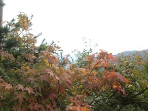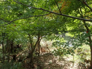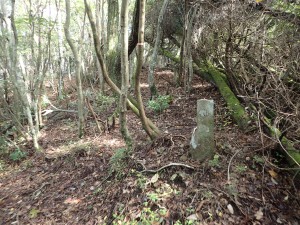 | 再び樋桶山頂上(13:14) | 石の上を歩く | 無事登山口(13:50) 上部はカエデ |