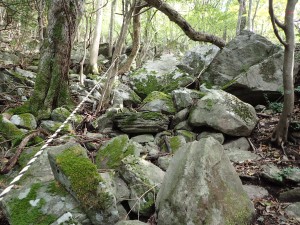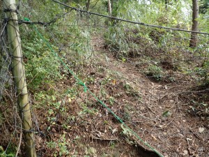| 鹿ネットをくぐる | ロープが張ってある | 石がゴロゴロとある |