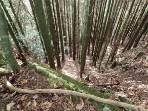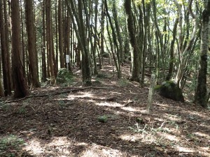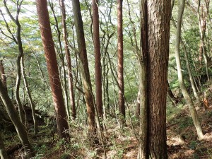 | 鞍部から植林帯を登り返す | 眺めが良い | 自然林に変わる |