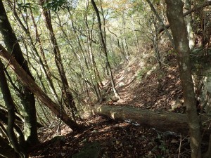 | 倒木が多い | 大牟田山頂上(11:18) | カエデは未だ紅葉していない |