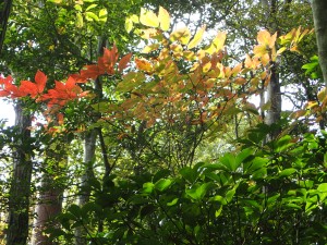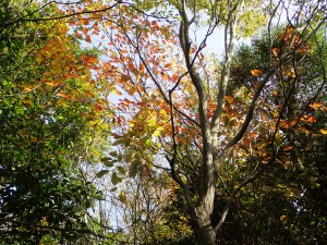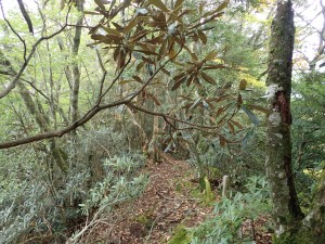 | きれいに紅葉している | 850.0mのピークを目指すとすぐにシャクナゲ | 東登山口方面へ |